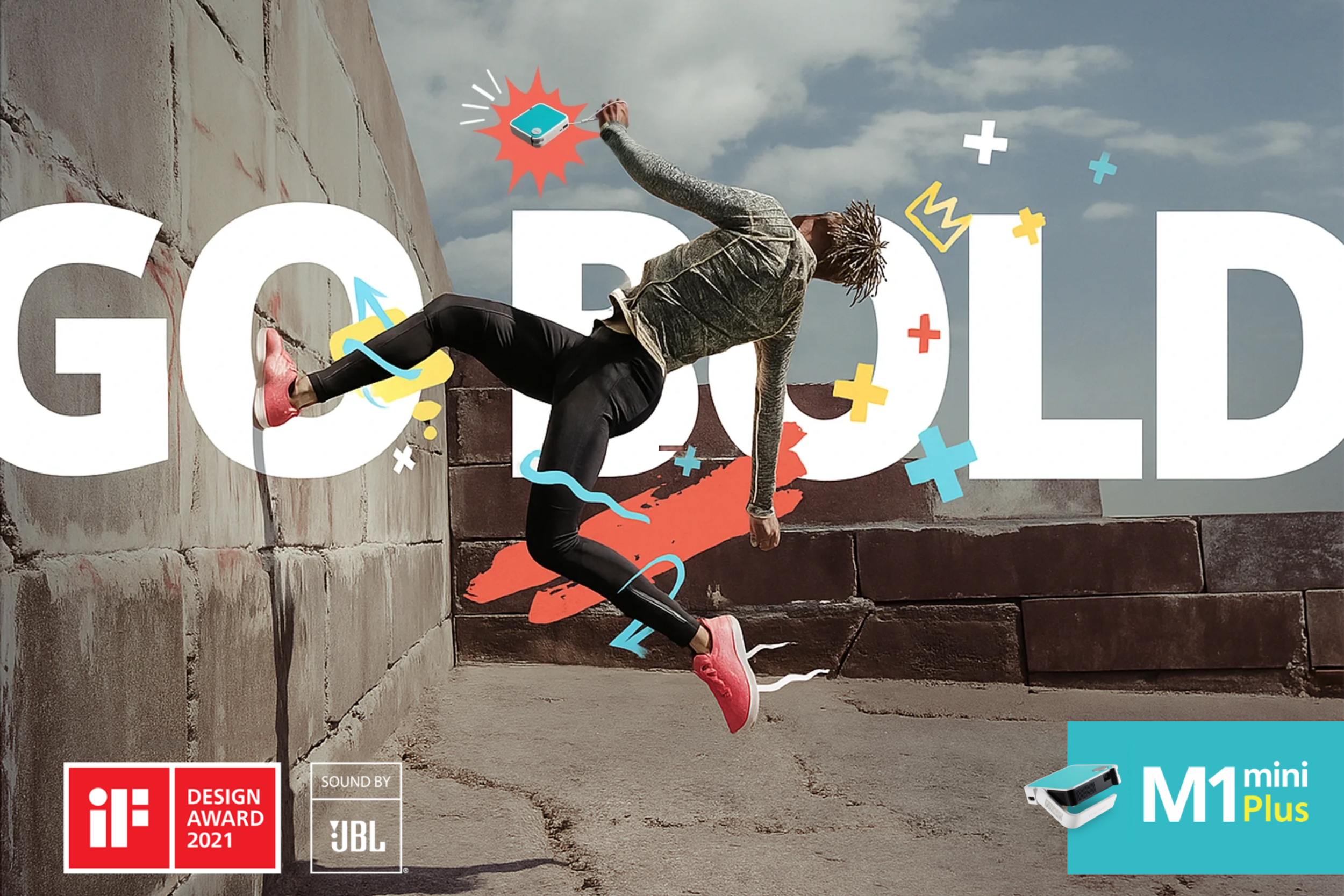 For the M1 Mini Plus global launch, I created the key visual, website, and animation using bold, kinetic design to express its portable, go-anywhere immersive power.